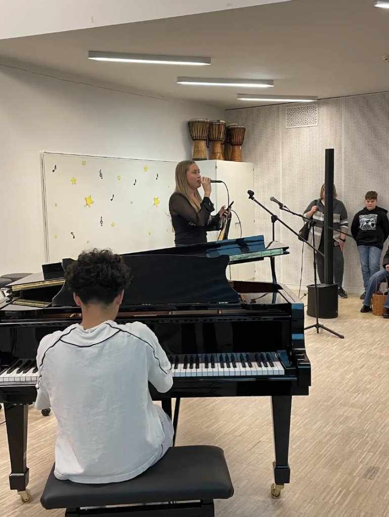 Ein zusätzlicher Programmpunkt war der Besuch im hauseigenen Tonstudio. Hier erhielten die Gäste einen spannenden Einblick in die kreative Arbeit der Schülerinnen und Schüler – von der Aufnahme über das Abmischen bis hin zum finalen Feinschliff.