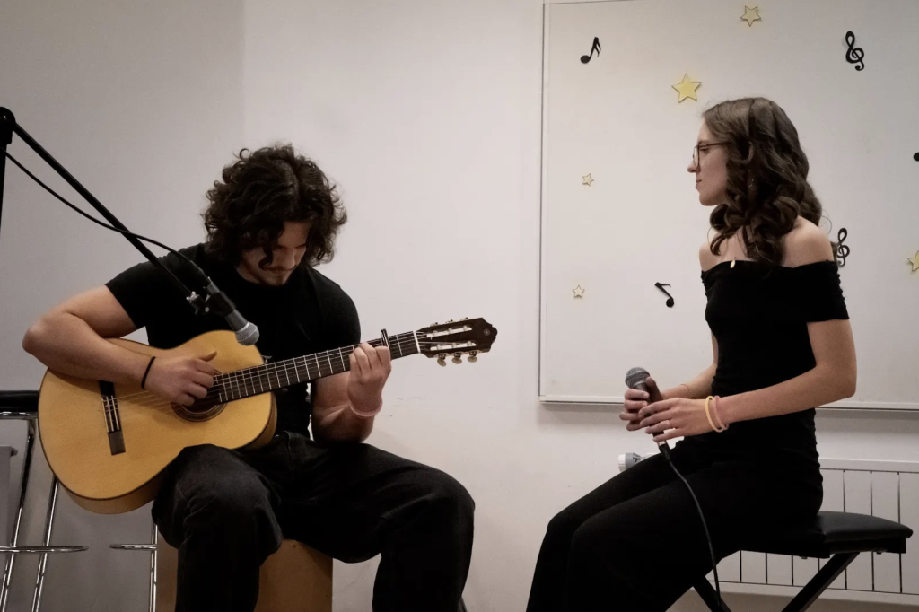 Nach der Eröffnungsfeier lud der Musikzweig zu einem weiteren Highlight in den großen Musiksaal ein. Dort erwartete die Besucherinnen und Besucher ein abwechslungsreiches Programm, das die große Bandbreite musikalischer Ausdrucksformen widerspiegelte. Wie jedes Jahr eröffnete das Vokalensemble den Konzertnachmittag und begeisterte heuer mit seiner Interpretation von „Fight Song“ von Rachel Platten. Besonders hervorzuheben ist die Uraufführung des Songs „A Wish“, den der Schüler Julian Boira selbst komponiert hat. Sowohl Text als auch Musik stammen aus seiner Feder und wurden von Lena Thaller und Julian Boira eindrucksvoll interpretiert. Auch der Einsatz besonderer Instrumente wie Harfe, Querflöte und Klarinette verlieh dem Programm eine besondere Klangfarbe und unterstrich die musikalische Vielfalt des Musikzweigs.
