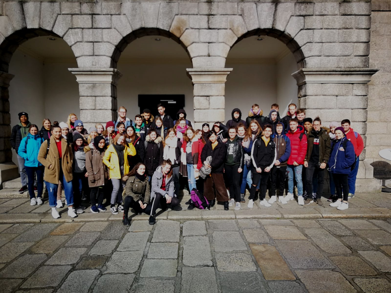 Anfang März traten die 7. Klassen zusammen mit den Professorinnen Unger, Eberhard und Weber die Sprachreise nach Bray (Irland) an! Neben diversen Ausflügen, wie zum Beispiel zu den bekannten Powerscourt Gardens und Waterfalls sowie nach Dublin, wurden 3 Vormittage in der Sprachschule verbracht. Außerdem stand eine interessante Tour durch die Stadt Bray an, wo die Schülerinnen und Schüler die wichtigsten historischen Bauwerke und Denkmale zu Gesicht bekamen. Danach durfte auch ein Küstenspaziergang nicht fehlen! Ziemlich am Ende der Woche fuhren wir mit dem Bus an die Westküste Irlands nach Galway. Eines der Highlights war das Irish Dancing, wo auch wir selbst das Tanzbein schwingen mussten. Wir waren sehr positiv gestimmt und hatten dabei eine Menge Spaß. Zu guter Letzt fuhren wir einen Tag in die Hauptstadt Dublin. Auch hier hatten wir eine sehr spannende und interessante Sightseeing-Tour. Außerdem schauten wir bei der weltbekannten Templebar sowie beim Trinity College, der größten Universität des Landes, vorbei. The Spire, eine riesige Spitze und eine der wichtigsten Wahrzeichen Dublins, durfte beim Rundgang ebensowenig fehlen. Auch das wechselhafte Wetter konnte uns die Laune nicht verderben!